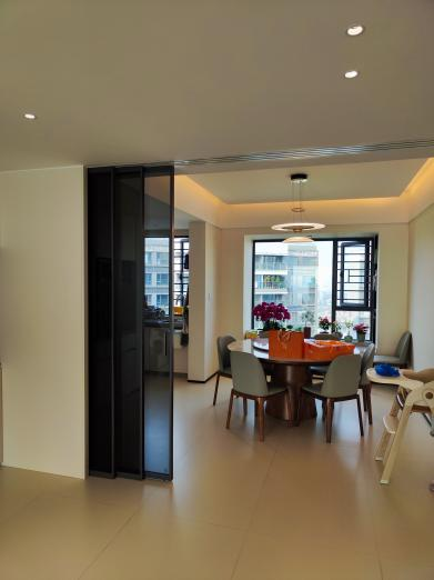 Biasanya, ketika digunakan sebagai ruang gaya terbuka, lebih transparan dan luas. Ketika pintu ditutup, ruang tamu dan ruang makan dapat digunakan secara bersamaan tanpa gangguan.